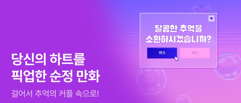 발렌타인데이 시즌, 만화 카테고리에서는 순정만화 중심의 시즌 이벤트를 운영합니다. 단순히 순정만화를 모아 놓는 것이 아니라, 고백·설렘·짝사랑 같은 감정 키워드를 기준으로 작품을 묶습니다. 독자가 특정 장르를 찾아 들어오지 않아도 지금 느끼는 감정만으로 읽고 싶은 작품을 만날 수 있는 구조입니다. 시즌이 만들어내는 분위기가 곧 큐레이션의 진입점이 되는 셈입니다.