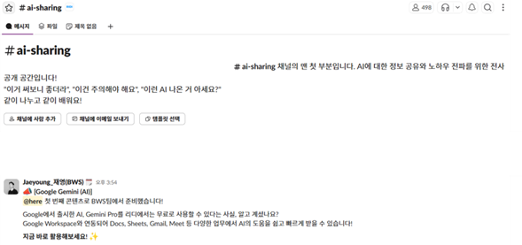 전사 공지, 신규 입사자 안내, 휴가·재택 알림 등 주요 커뮤니케이션이 Slack으로 일원화되면서 운영 체계의 일관성과 투명성이 강화되었습니다. 또한, 리디는 전사적인 업무 자동화와 생산성 강화를 위해 AI 활용을 확대하고 있습니다. 사내 AI 공모전과 Slack 내 #ai-sharing 채널을 통해 구성원들이 AI 노하우를 공유하고 있으며, Slack 엔터프라이즈 +플랜을 도입하면서 자동 번역, 채널 요약 등 Slack의 다양한 AI 기능들도 활용하고 있습니다.
